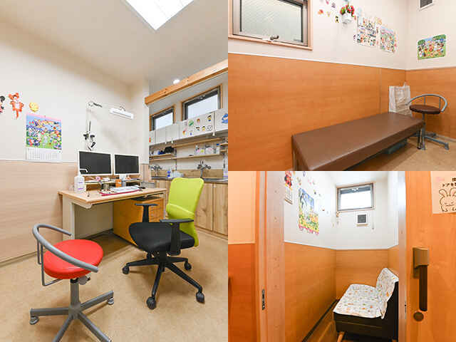 クリニック開設にあたって特にこだわったのが“換気”と“清潔な空間”でした。戸建てクリニックの強みで、診察室にも待合室にも大きな窓をたくさん配置して自然の風がしっかり通るようにしています。小児科は感染症患者さまが多いので飛沫、空気感染対策での換気の徹底が第一と心がけています。狭い院内ですが感染症児と非感染児の動線を分けるように工夫しています。